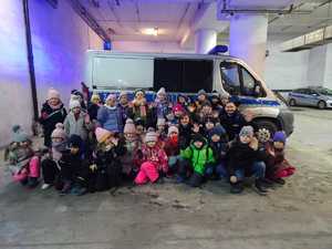 Rozmowa policjantów z dziećmi o bezpieczeństwie w trakcie ferii zimowych