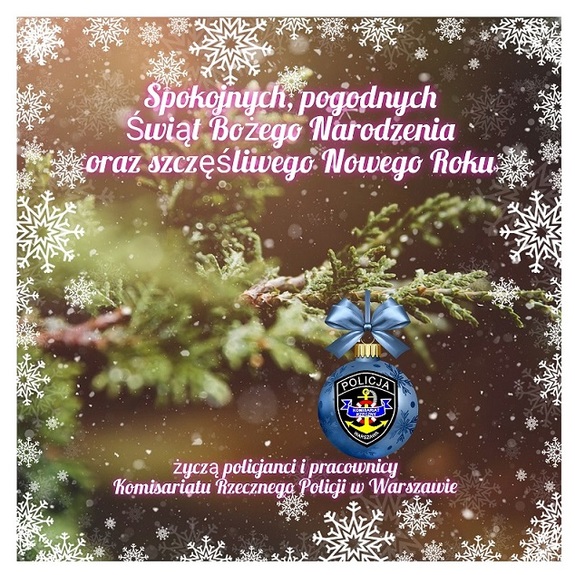 Z okazji zbliżających się świąt Narodzenia Pańskiego policjanci i pracownicy Komisariatu Rzecznego Policji w Warszawie życzą spokojnych, pogodnych świąt Bożego Narodzenia oraz szczęśliwego Nowego Roku.