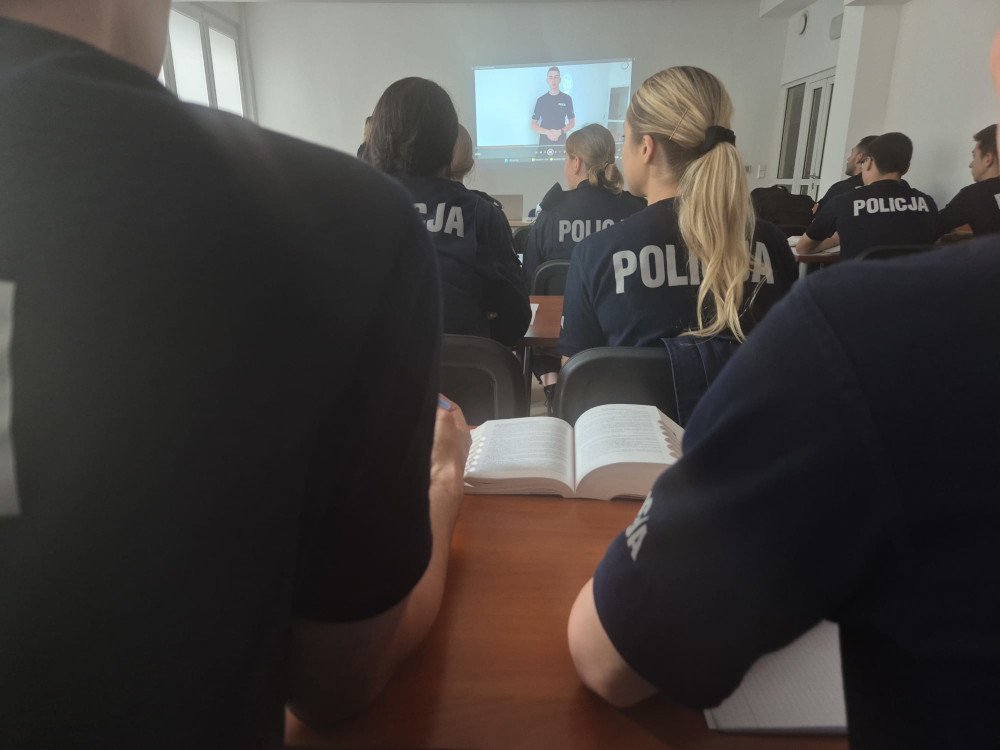 Słuchacze szkolenia podstawowego zgłębili tajniki działalności prasowo-informacyjnej w Policji stając bezpośrednio przed okiem kamery. Wiedza przekazana przez doświadczonego w tym zakresie wykładowcę, który w przeszłości pełnił obowiązki oficera prasowego, stanowiła nieocenioną wartość dodaną całego programu szkolenia. W dobie powszechnego rejestrowania obrazu i dźwięku, publikowania materiałów w mediach społecznościowych i tradycyjnych, sposób, w jaki funkcjonariusze realizują swoje obowiązki służbowe, ma kluczowe znaczenie dla postrzegania Policji przez społeczeństwo. Od wiedzy, postawy, zaangażowania, sumienności i drobiazgowości każdego policjanta zależy nie tylko skuteczność działania, ale także wizerunek całej formacji.