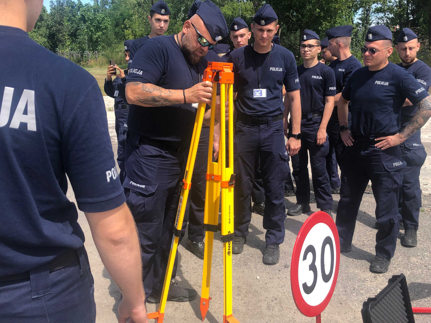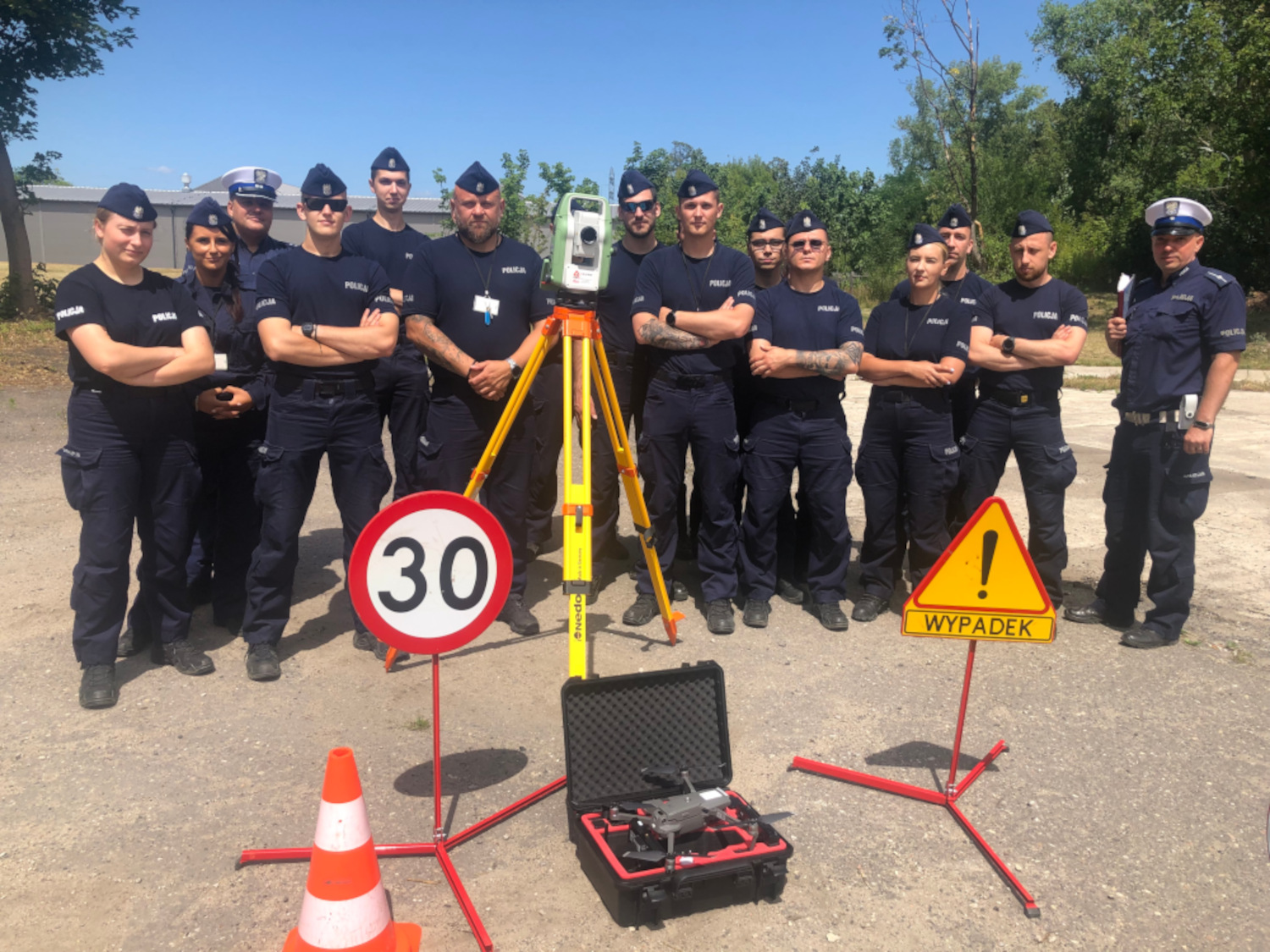 Kolejnym ważnym aspektem była nauka organizacji ruchu wahadłowego i objazdów na miejscu zdarzenia. Policjanci dowiedzieli się również, jak dokumentować czynności wykonywane na miejscu zdarzenia, co ma istotne znaczenie dla późniejszej rekonstrukcji i analizy zdarzenia. Nie zabrakło nowoczesnych technologii wspomagających służbę. Słuchacze mieli możliwość zapoznania się z obsługą specjalistycznych urządzeń, takich jak służbowy dron, który coraz częściej wykorzystywany jest na miejscu zdarzenia do szybkiego i precyzyjnego dokumentowania sytuacji. Dodatkowo, szkolenie obejmowało demonstrację systemu eSurv – zaawansowanego narzędzia wspomagającego obsługę zdarzeń drogowych. System ten charakteryzuje się nie tylko szybkością działania, lecz także precyzją i czytelnością pomiarów, które są kluczowe przy rekonstrukcji przebiegu wypadku.