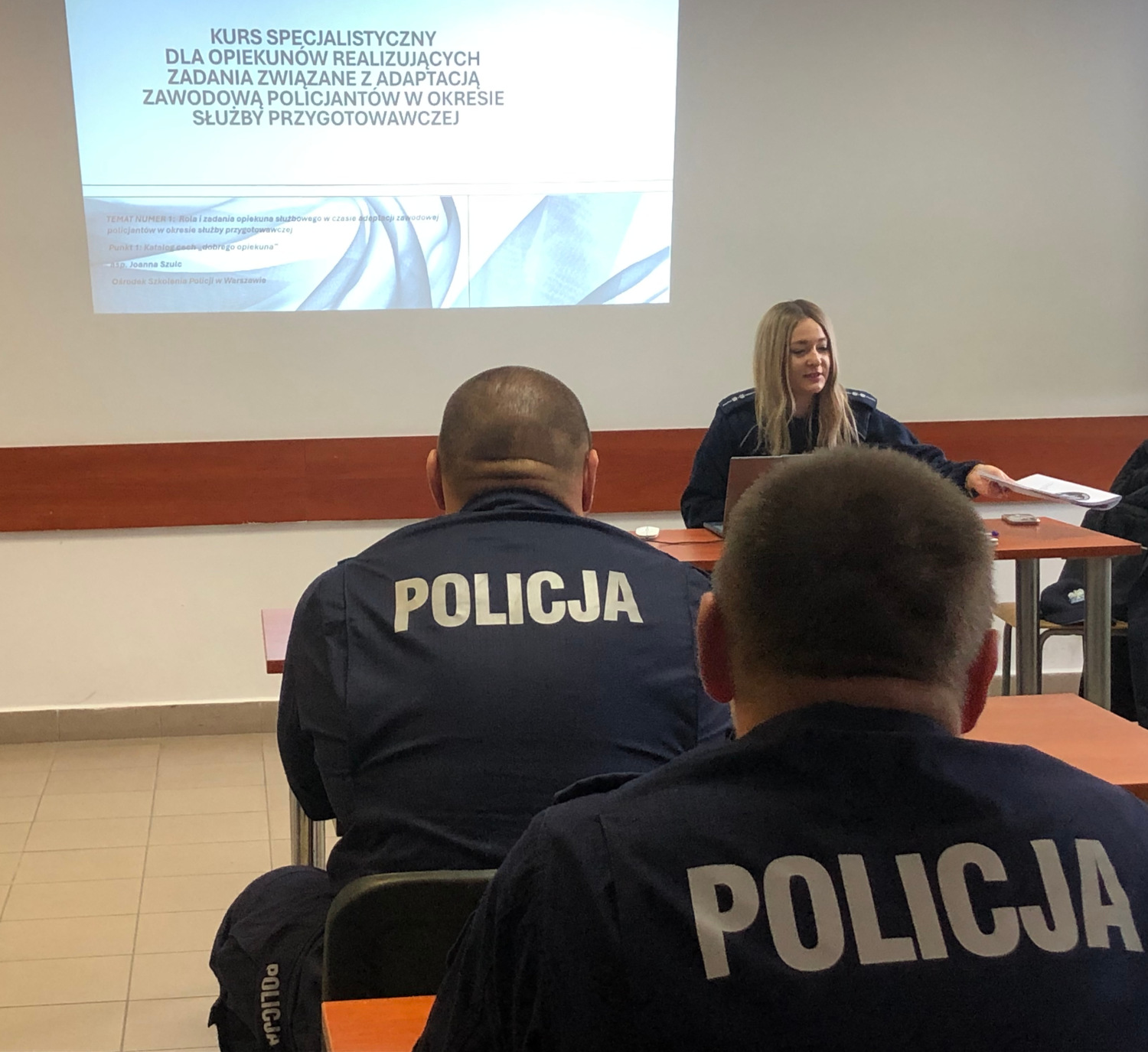 Dzisiaj w Ośrodku Szkolenia Policji w Warszawie rozpoczął się już drugi kurs specjalistyczny dedykowany opiekunom, którzy realizują zadania związane z adaptacją zawodową policjantów w okresie służby przygotowawczej. To wyjątkowe szkolenie ma na celu wyposażenie funkcjonariuszy w niezbędną wiedzę i umiejętności, które pozwolą skutecznie wspierać młodych policjantów na początku ich służby.