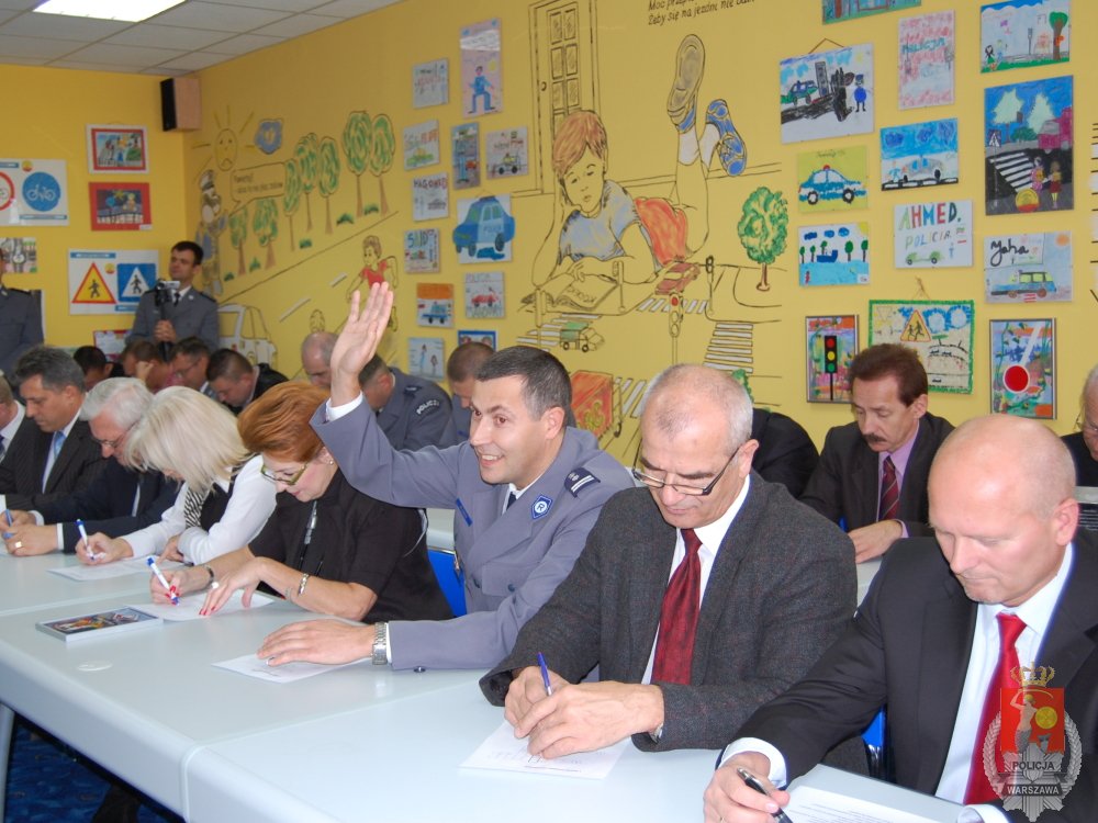W uroczystym otwarciu uczestniczyli m.in. z ramienia MSWiA - Dyrektor Departamentu Analiz i Nadzoru Jacek Zalewski, Urzędu m. st. Warszawy - Dyrektor Biura Bezpieczeństwa i Zarządzania Kryzysowego Ewa Gawor, Komendy Głównej Policji - insp. Marek Fidos Dyrektor Biura Ruchu Drogowego. Dla zaproszonych gości policjanci warszawskiej „drogówki” przygotowali nie lada niespodziankę. Wszyscy musieli zająć miejsce w szkolnych ławkach i wypełnić krzyżówkę o tematyce związanej z ruchem drogowym. Nie było łatwo. Najszybciej z łamigłówką poradził sobie insp. Marek Fidos, na drugim miejscu uplasowała się Ewa Gawor. Zwycięzcy otrzymali w nagrodę policyjne maskotki „Borsuka”.