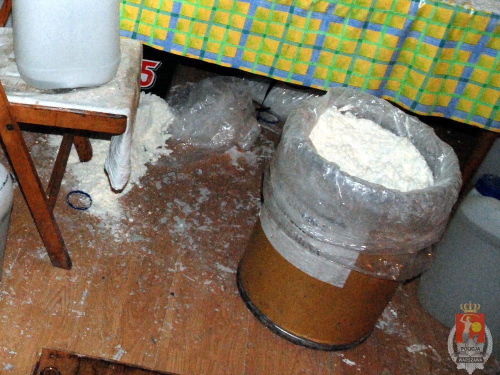 Stołeczni policjanci wspólnie z policjantami biura operacji antyterrorystycznej KGP i funkcjonariuszami Izby Celnej zlikwidowali laboratorium, gdzie funkcjonowało 15 linii produkcyjnych prekursora BMK do produkcji amfetaminy. Zatrzymali 3 członków grupy przestępczej, którzy wyprodukowali 3300 litrów BMK. Z prekursora wartości blisko 10 mln złotych można było wyprodukować ponad 4 tony amfetaminy. Zatrzymanym może grozić do 10 lat pozbawienia wolności