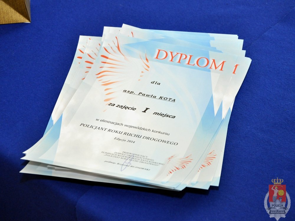 Aspirant Paweł Kot z Wydziału Ruchu Drogowego Komendy Stołecznej Policji zwyciężył podczas tegorocznych eliminacji wojewódzkich konkursu "Policjant Roku Ruchu Drogowego" organizowanego pod patronatem Komendanta Głównego Policji. Podczas uroczystego spotkania w Białej Sali Pałacu Mostowskich najlepszym policjantom gratulacje składał Komendant Stołeczny Policji oraz Wojewoda Mazowiecki.