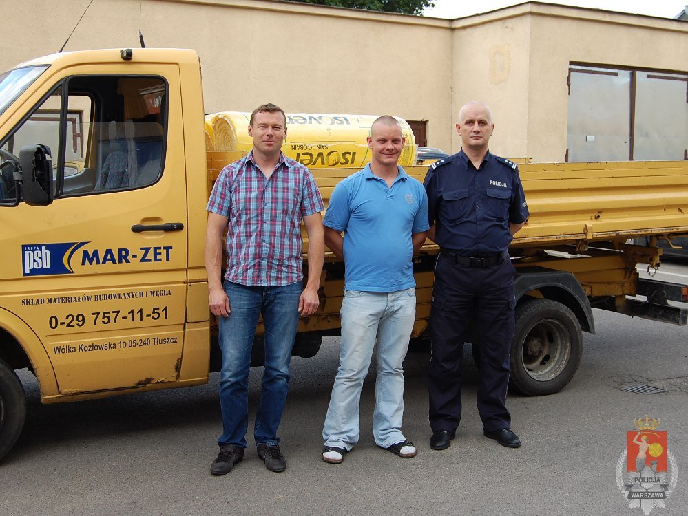 W dniu dzisiejszym Pan Mariusz Teodorczyk właściciel Składu Budowlanego MAR-ZET z Wólki Kozłowskiej w obecności Komendanta Powiatowego Policji w Wołominie przekazał pracownikowi naszej komendy, któremu pod koniec maja br. częściowemu spaleniu uległ dom rodzinny w Wołominie, materiały budowlane niezbędne do wykonania prac związanych z odbudową dachu. Panu Mariuszowi bardzo dziękujemy za udzieloną pomoc i szybką reakcję na apel Komendanta Powiatowego.