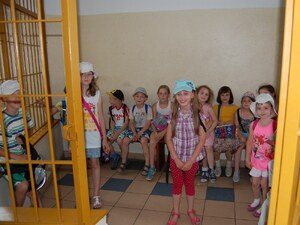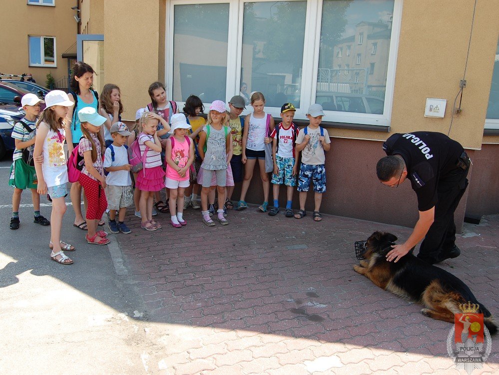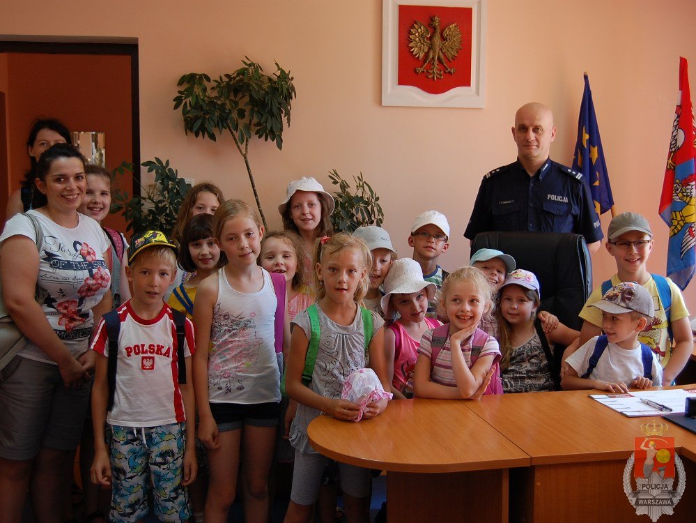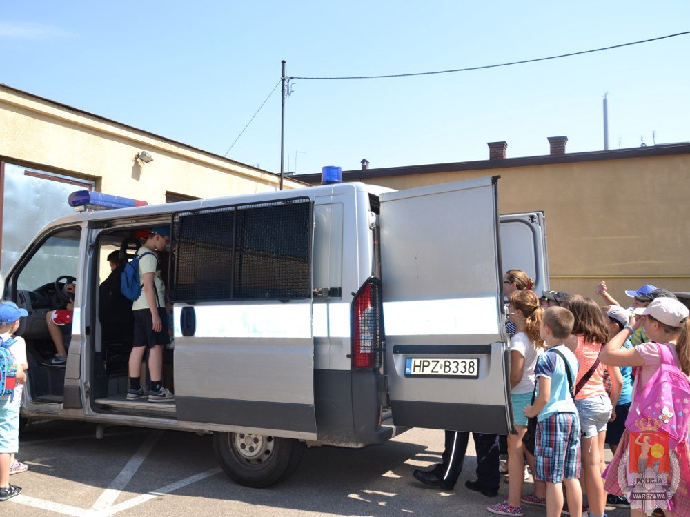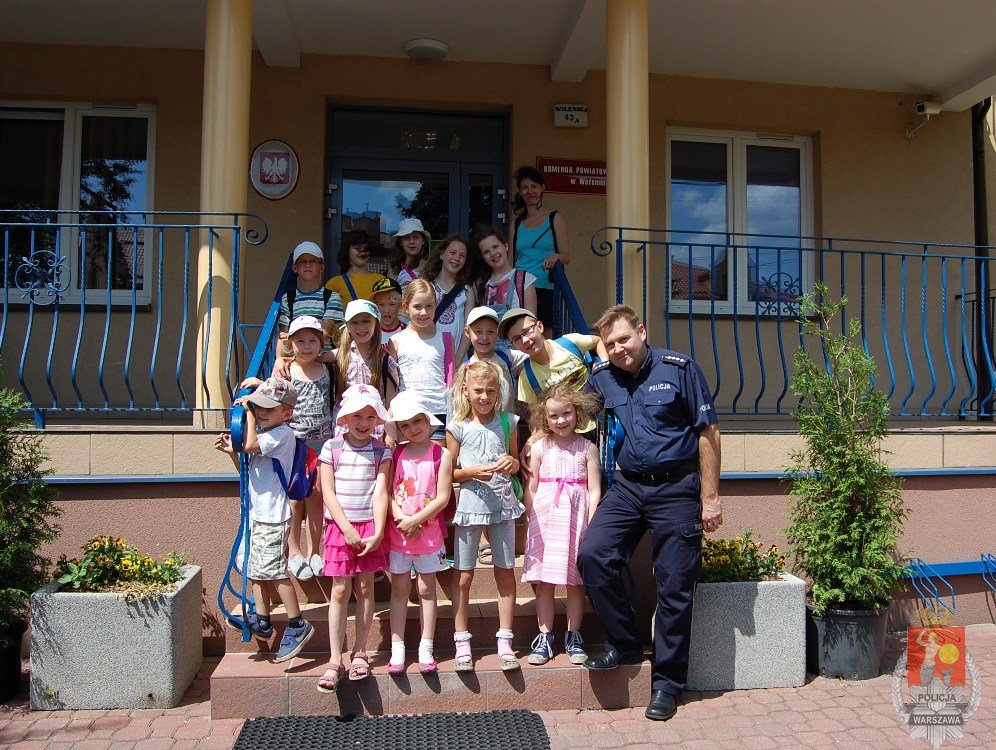 Dzieci z Wołomina i Kobyłki w ramach organizowanych zajęć „LATO W MIEŚCIE” odwiedziły wołomińską komendę. Goście, podczas pełnej atrakcji wycieczki,odwiedzenia dowiedzieli się, jak bezpiecznie spędzić wakacje. Dzieci zwiedziły budynek komendy, były w gabinecie Komendanta Powiatowego Policji, w policyjnym areszcie i co najważniejsze - każdy mógł usiąść w policyjnym radiowozie i spotkać się z policyjnym psem „Miśkiem”.
