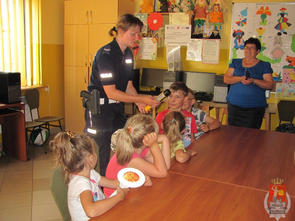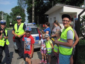 Policjanci z grodziskiej komendy uczestniczyli dziś w wakacyjnym spotkaniu z dziećmi, które spędzały czas na półkoloniach w świetlicy TPD w Zabłotni. Policjantka zajmująca się profilaktyką przypomniała najmłodszym zasady bezpieczeństwa podczas letniego wypoczynku, a funkcjonariusze drogówki sprawdzili ich wiedzę na temat zachowań na drodze. Cała grupa została również zaproszona do praktycznych działań na ulicy. Na zakończenie, oprócz życzeń „bezpiecznych wakacji”, wszyscy otrzymali odblaskowe zawieszki, a także naklejki dla rodziców z hasłem akcji „Nigdy nie jeżdżę po alkoholu”.