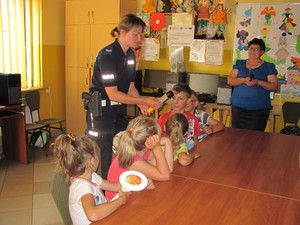 Wśród wakacyjnych zajęć dla uczestników półkolonii w świetlicy TPD w Zabłotni organizatorzy zaplanowali również spotkanie z policjantami. Głównym celem dzisiejszej wizyty funkcjonariuszy było przypomnienie uczestnikom zasad bezpieczeństwa podczas letnich zabaw, a szczególnie podczas podróży i przemieszczania się po drogach. Policjanci przypominali dzieciom właściwe zachowania dla pasażerów pojazdów, pieszych i rowerzystów. Dużo uwagi poświęcili również trzeźwości kierowców, z którymi podróżują najmłodsi.