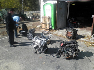 W tym czasie inni funkcjonariusze udali się do Kobyłki. Równolegle weszli na teren dwóch posesji. Na jednej z nich, w pomieszczeniach gospodarczych znaleźli 38 silników, 23 skrzyń biegów i wiele różnych części do toyot. W domu również znajdowały się podzespoły wymontowane z japońskich samochodów oraz zdekompletowana linia do produkcji BMK. W dostaniu się na teren drugiej posesji w Kobyłce policjantom pomogli strażacy, którzy przecięli kłódkę zabezpieczającą wejście na posesję. Tam funkcjonariusze znaleźli częściowo rozłożoną toyotę auris. Z policyjnych informacji wynika, że auto zostało skradzione w Gera w Niemczech. Ponadto w garażu znajdowały się trzy silniki i inne części samochodowe. Do sprawy został zatrzymany 21-letni Kamil J. Mężczyzna już usłyszał zarzut paserstwa.