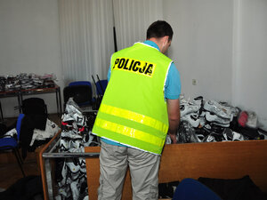 Podczas przeszukania jednego z kontenerów policjanci zabezpieczyli ponad 1300 par obuwia, prawie 2900 sztuk odzieży oraz 24 tysiące par skarpetek na kwotę prawie ponad 920 tysięcy złotych. 57-latka, do której należał towar, otrzymała zarzut wprowadzania do obrotu towarów z nielegalnie naniesionymi zastrzeżonymi znakami towarowymi. Grozi za to kara do 2 lat pozbawienia wolności.