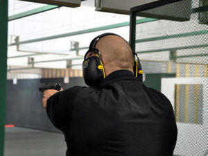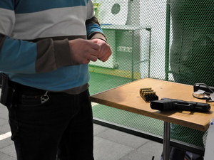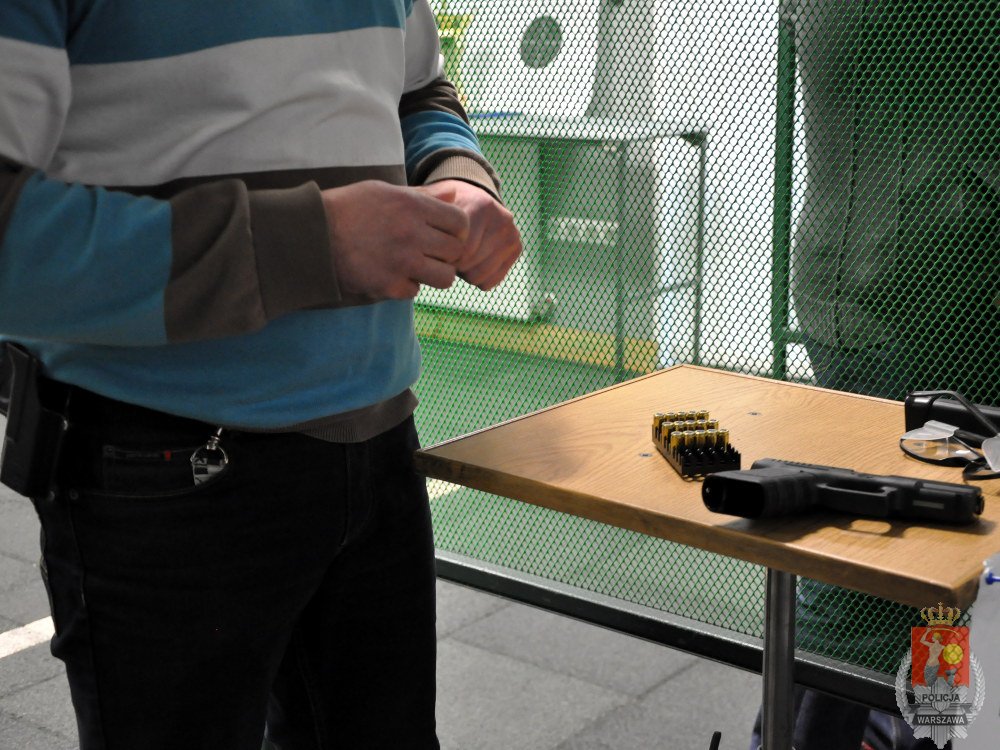 - postawa wyjściowa: stojąca, broń w kaburze nieprzeładowana z podpiętym magazynkiem, drugi magazynek w ładownicy,