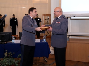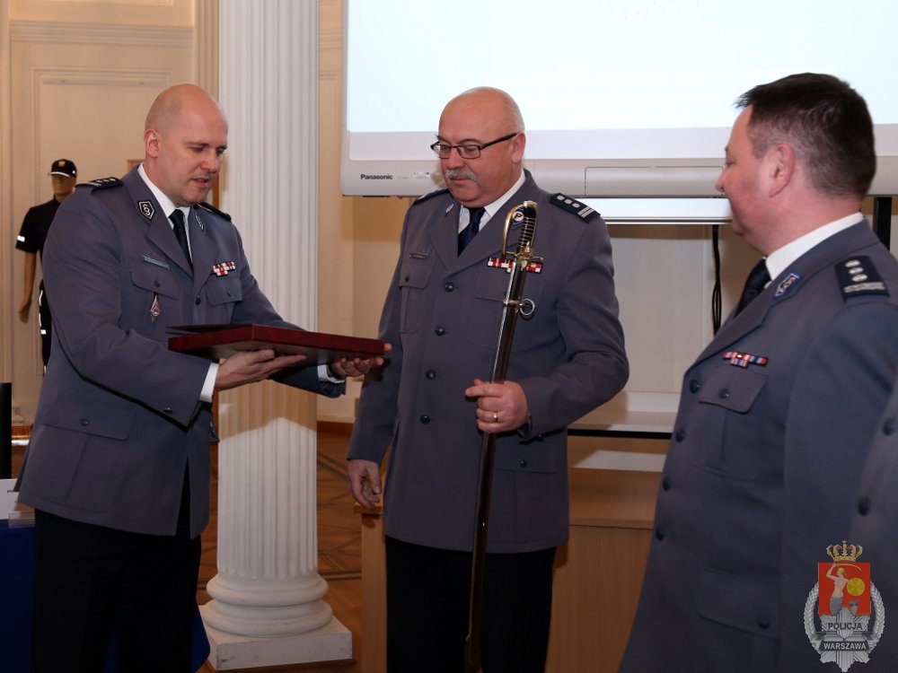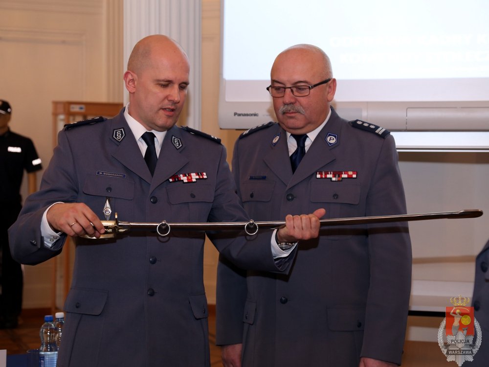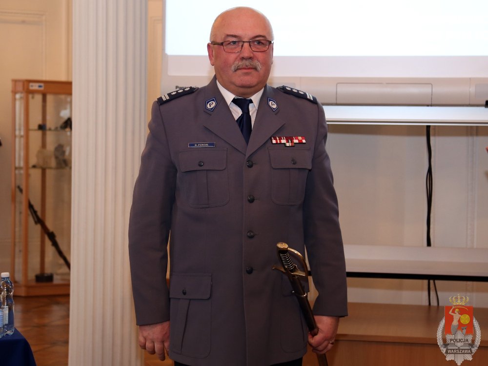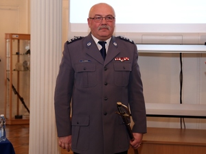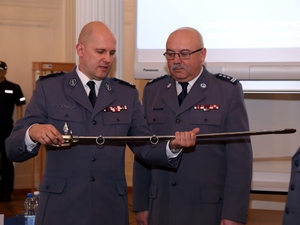Insp. Michał Domaradzki podziękował insp. Dariuszowi Pergołowi za długoletnią służbę i wręczył pamiątkową szablę.
