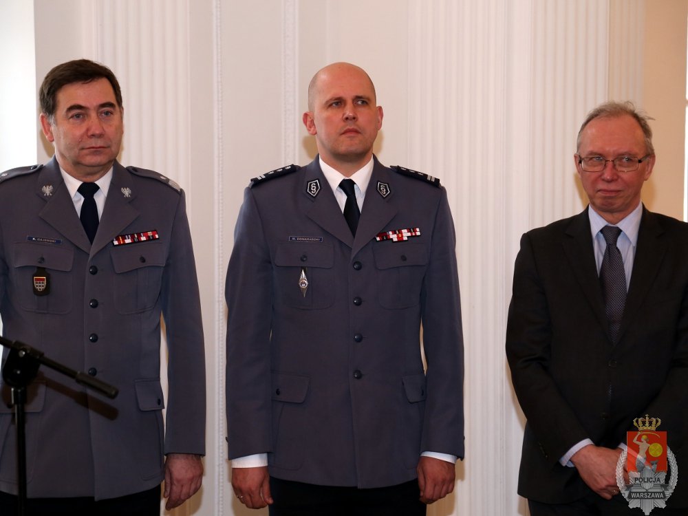 - Spotkaliśmy się tu z powodu szczególnej okazji – powiedział Komendant Stołeczny Policji insp. Domaradzki. – Chciałbym uścisnąć rękę Dariusza Pergoła, który po 37 latach służby odchodzi jutro na emeryturę. Był znakomitym fachowcem, znającym realia służby w Warszawie, odpowiedzialnym za pion prewencji. Dał się poznać m.in. jako dobry dowódca podczas zabezpieczenia Mistrzostw Europy w piłce nożnej „Euro 2012”, kiedy strzegł bezpieczeństwa na stadionie narodowym podczas każdego spotkania meczowego, gromadzącego 50 tys. osób.