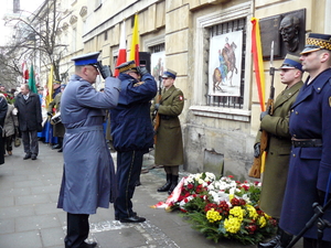 W uroczystości odsłonięcia tablicy pamiatkowej udział wzięli zastępca Komendanta Rejonowego Policji Warszawa I mł. insp. Michał Pisarski, Włodzimierz Paszyński, oraz zastępca Prezydent m.st. Warszawy.