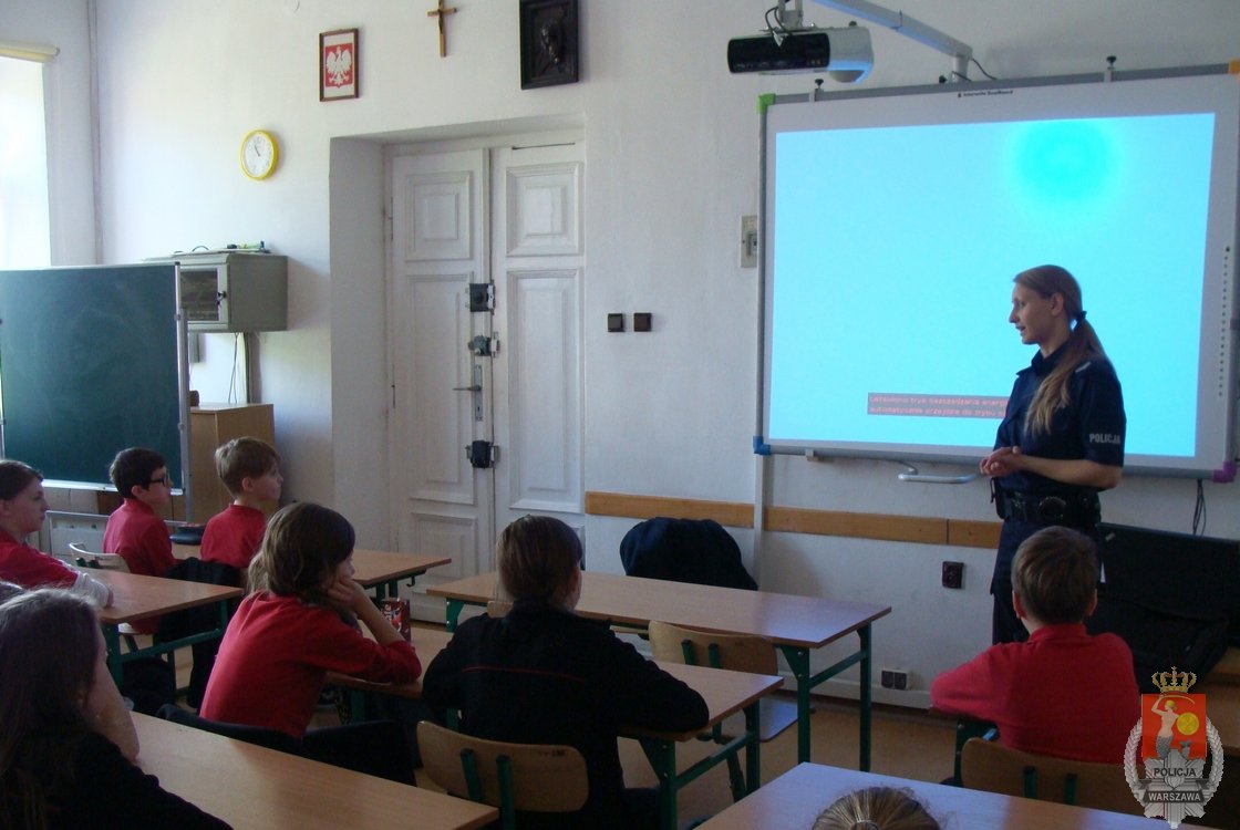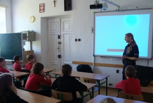 Starszy sierżant Jolanta Pronobis podczas spotkania z uczniami z klasy piątej szkoły podstawowej w Zespole Szkół Salezjańskich w Mińsku Mazowieckim, starała się uczulić młodzież na fakt istnienia cyberprzestępców.