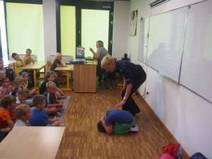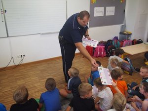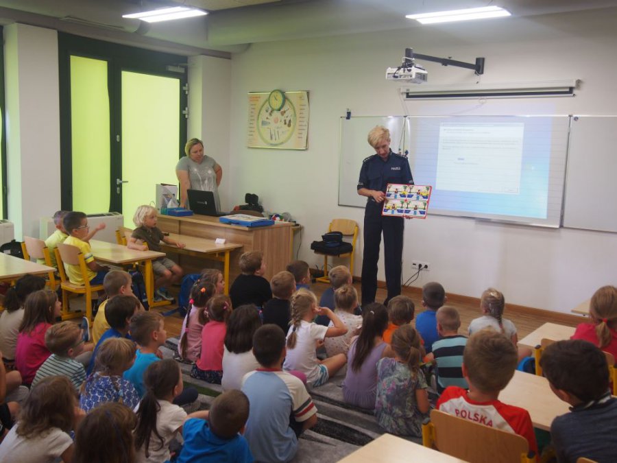 Pierwszaki na zajęciach edukacyjnych przeprowadzonych przez policjantów poznały podstawowe zasady bezpieczeństwa na drodze np. jak przechodzić na drugą stronę jezdni, zarówno na przejściach z sygnalizacją świetlną, jak i bez. Dzieci poinformowano jak należy się zachować w przypadku kontaktu z osobą obcą czy też co mają zrobić kiedy napotkają groźnego psa.