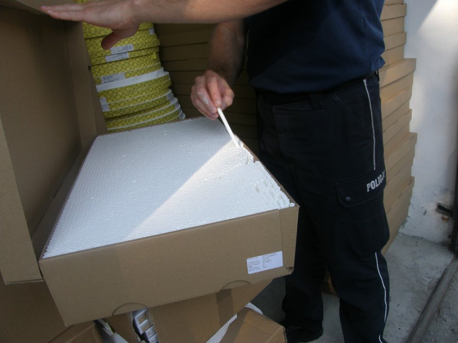 Przed 2.00 w nocy policjanci pełniący służbę patrolową na jednej z grodziskich ulic zauważyli samochód, który na widok radiowozu nagle skręcił. Funkcjonariusze natychmiast zatrzymali iveco do kontroli. Po legitymowaniu pięciu jadących autem mężczyzn, mundurowi zainteresowali się przewożonym ładunkiem. Kierowca i pasażerowie wyraźnie próbowali uniknąć rozmowy na temat dużej ilości kartonów wypełnionych paczkami papierosów bez polskich znaków akcyzy. Wszyscy mężczyźni zostali zatrzymani. Przy jednym z nich policjanci znaleźli dodatkowo 2 fiolki z białym proszkiem.