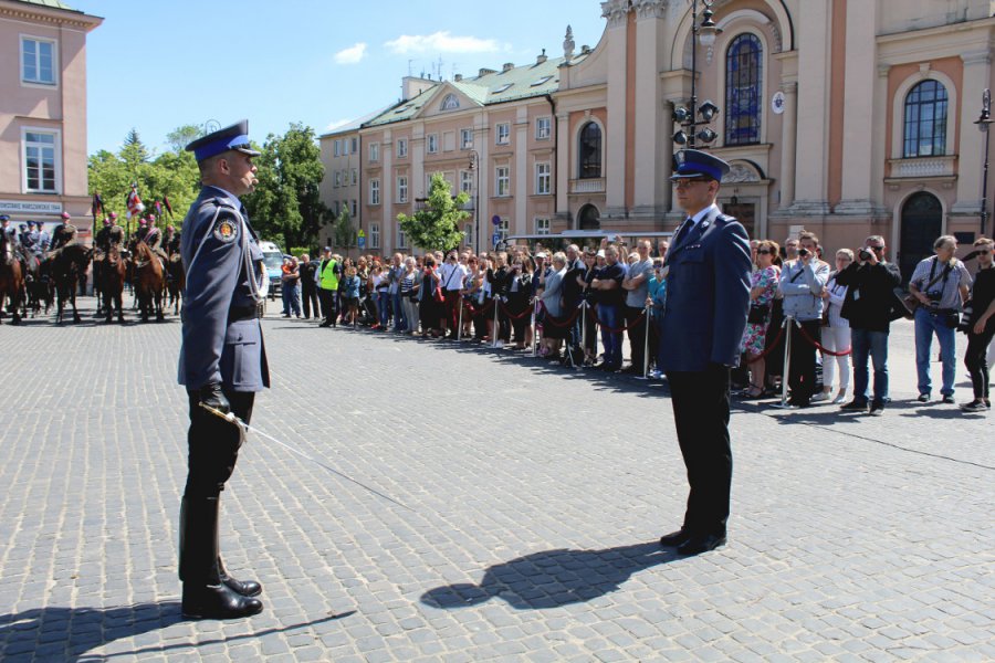 Po powitaniu gości zgromadzonych na placu Krasińskich głos zabrał Komendant Stołeczny Policji mł. insp. dr Rafał Kubicki, który w pierwszej kolejności zwrócił się do młodych policjantów: - Dzisiejszy dzień jest dla Was szczególny. Składając ślubowanie potwierdzacie wybór Waszej drogi zawodowej, a słowa roty wypowiadane przed Pomnikiem Powstania Warszawskiego nabiorą szczególnej wartości. Niech będą drogowskazem w Waszej dalszej służbie. Życząc wam powodzenia, przekażcie proszę słowa uznania najbliższym, których wsparcie i wyrozumiałość podczas pełnienia waszej służby będzie niezwykle istotna. Dzisiejsza uroczystość to również okazja do uhonorowania Ogniwa Konnego stołecznej Policji, które obchodzi w tym roku 45-lecie.