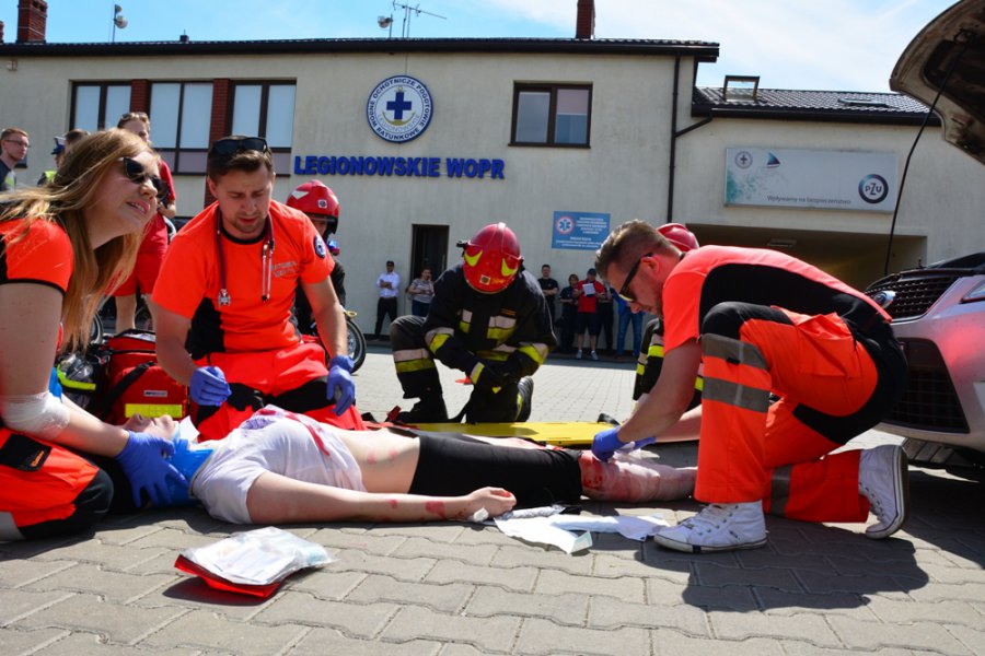 Piknik rozpoczął się w upalne przedpołudnie symulacją zdarzenia drogowego. Brały udział w nim: Pogotowie Ratunkowe, załoga Straży Pożarnej z Powiatowej PSP w Legionowie oraz motocyklowy patrol Ruchu Drogowego z KPP w Legionowie. Podczas symulacji, potrącenia pieszego przez samochód osobowy, goście pikniku mogli zobaczyć, jak prawidłowo powinna przebiegać taka akcja ratunkowa.