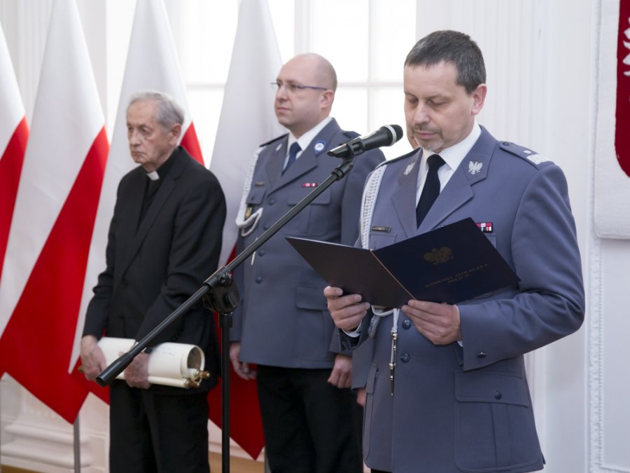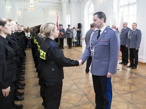 – Wstępujecie do naszej rodziny policyjnej, a dzisiejsze ślubowanie na pewno będziecie pamiętać przez całe życie. Praca policjanta jest wymagająca, ponieważ łączy przeciwstawne cechy. Trzeba być twardym, zdyscyplinowanym, silnym, a jednocześnie wrażliwym i empatycznym. Zadania wyznaczone dla Policji są bardzo czytelne: „strzec bezpieczeństwa Państwa i jego obywateli, nawet z narażeniem życia”. To ważne słowa, które będą drogowskazem na czas Waszej służby. Piękno tej pracy polega na tym, że daje satysfakcję i przywilej pomagania ludziom. Służba w garnizonie stołecznym niesie ze sobą wiele wyzwań, ale to właśnie tutaj jest najlepsza szkoła życia policyjnego. To praca zaufania społecznego i oczekuję, że będziecie działać z zaangażowaniem i poszanowaniem praw człowieka. Życzę Wam powodzenia, bo jeśli robi się coś z pasją, sukcesy same przychodzą z czasem.