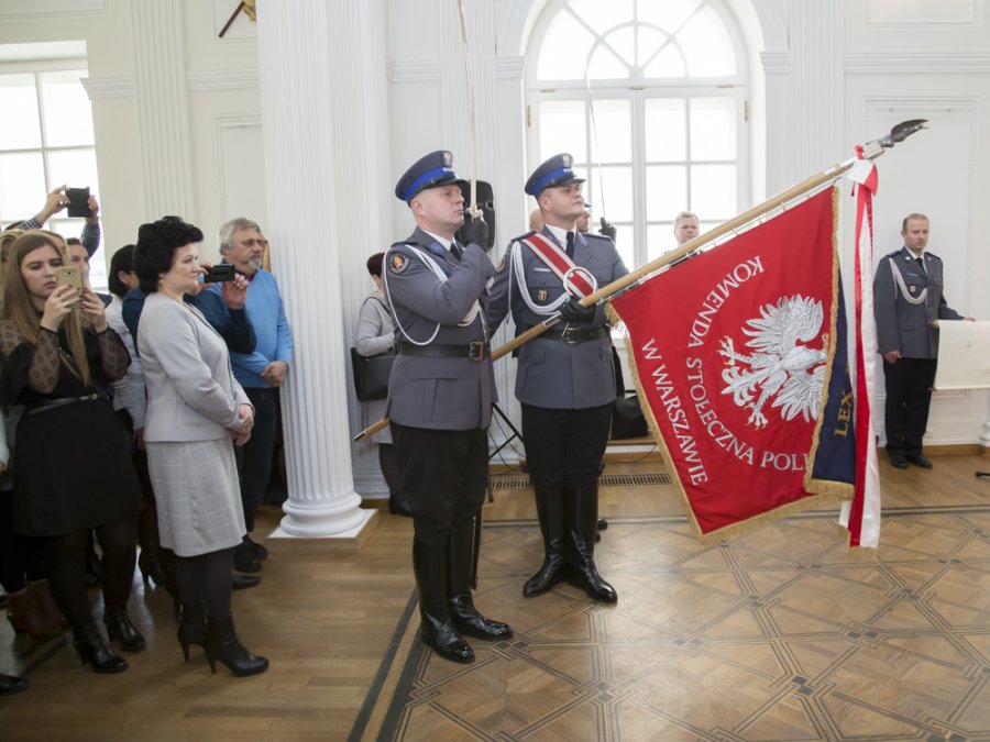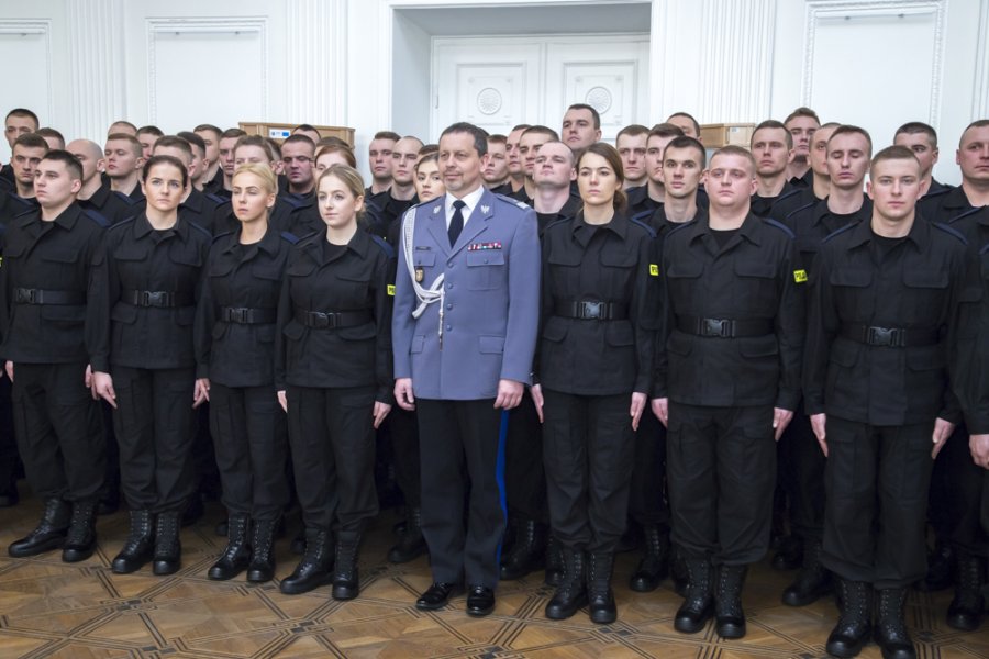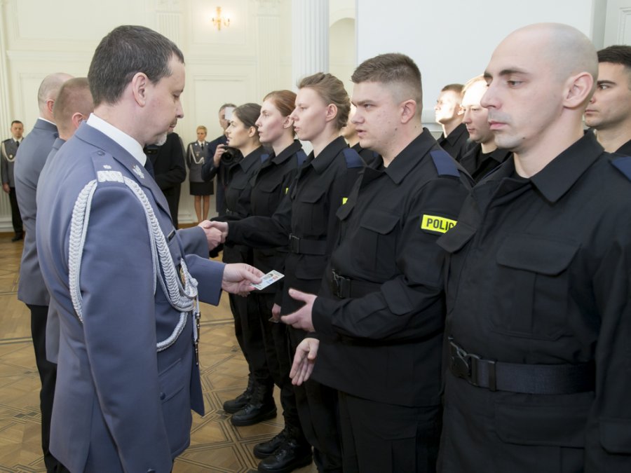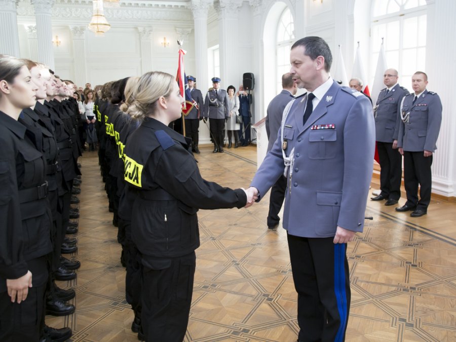 Po złożeniu meldunku Komendantowi Stołecznemu Policji przez dowódcę uroczystości nadkom. Romana Maciejewskiego wprowadzono poczet sztandarowy. Nowo przyjęci policjanci złożyli ślubowanie. Słowa roty przysięgi wybrzmiały w Białej Sali Pałacu Mostowskich wypowiadane za Komendantem Stołecznym Policji nadinsp. Pawłem Dobrodziejem. Następnie wszystkim policjantom wręczono legitymacje służbowe.