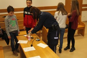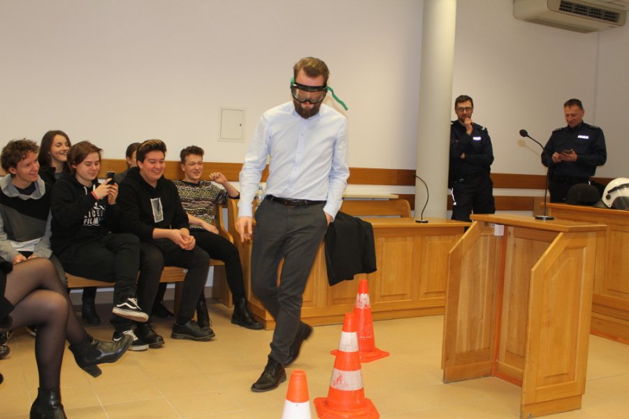 Młodzież pokonywała też przeszkody w alkogoglach, które umożliwiają trzeźwej osobie widzenie świata oczami kogoś z jednym promilem alkoholu we krwi. Dzięki temu urządzeniu w atmosferze świetnej zabawy każdy przyszły kierowca mógł sobie uświadomić jakim zagrożeniem jest jazda na podwójnym gazie. Spotkanie w sądzie było również okazja do promowania zawodu policjanta.