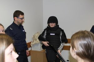 Funkcjonariusze zaprezentowali sprzęt jakim na co dzień posługują się policjanci oraz policjanci zatrzymujący niebezpiecznych przestępców. Dużym zainteresowanie cieszyło się spotkanie z policyjnymi psami. Przewodnicy opowiadali młodym ludziom o swojej codziennej służbie z czworonogami.