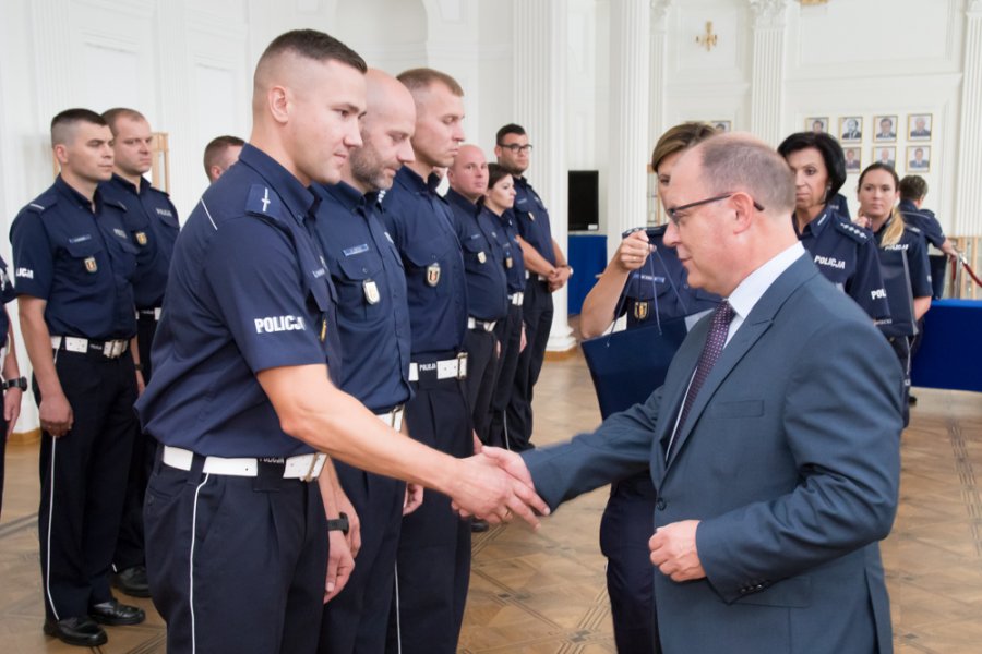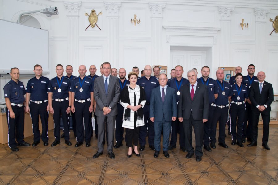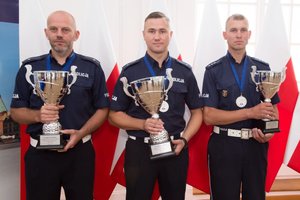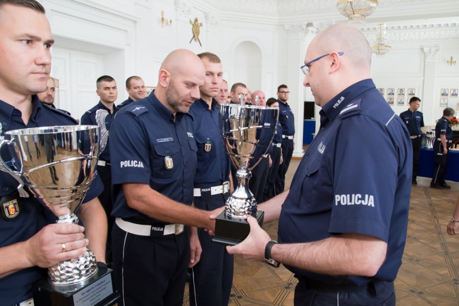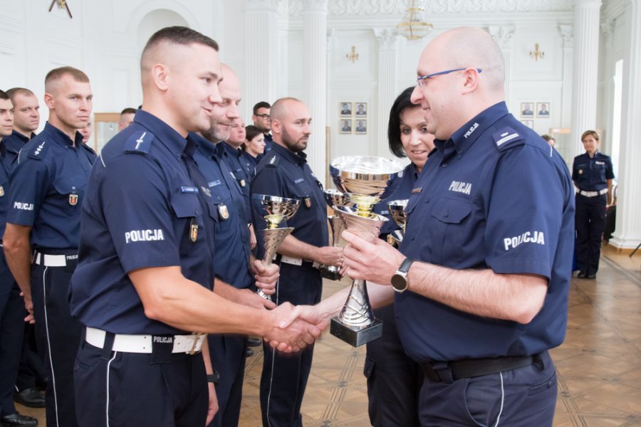 26 zawodników, reprezentujących stołeczny wydział ruchu drogowego oraz powiaty okołowarszawskie, przez cztery dni – od 12 do 15 czerwca - rywalizowało o tytuł najlepszego policjanta ruchu drogowego w garnizonie. Uczestnicy zmierzyli się w 6 konkurencjach sprawdzających ich wiedzę i umiejętności zawodowe. Zwycięzcą stołecznego finału został mł. asp. Marcin Sulik z WRD KSP. Drugie miejsce przypadło policjantowi z tego samego wydziału mł. asp. Konradowi Szpakowi, a trzecie asp. Tomaszowi Wiąckowi z KPP w Mińsku Mazowieckim. Dziś w Białej Sali I Zastępca Komendanta Stołecznego Policji podinsp. Tomasz Szymański oraz zaproszeni goście podziękowali im za sportowe współzawodnictwo oraz wręczyli puchary i nagrody.