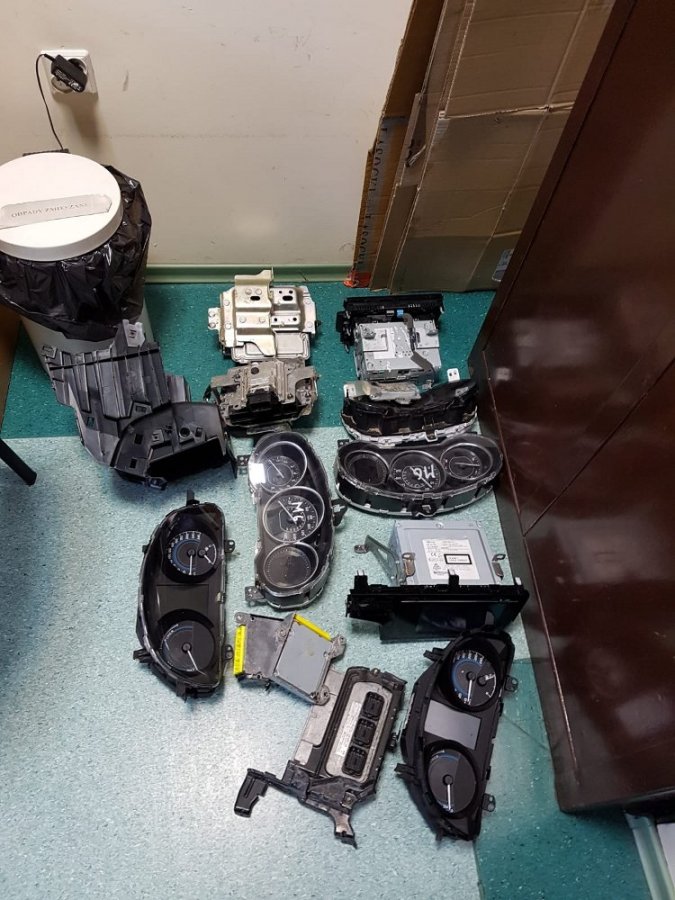 Na terenie posesji znajdowały się też liczne elementy wyposażenia pojazdów posiadające numery nadające się do identyfikacji miedzy innymi: skrzynie biegów, moduły elektroniczne zegary i radioodtwarzacze samochodowe. Funkcjonariusze wspólnie z biegłym odczytali numery nadwozia w hondzie civic, która okazała się być utracona na terenie Marek w maju 2018r, oraz elementów nadwozia forda mondeo skradzionego w 2017r na terenie warszawskiej Pragi. Funkcjonariusze do dalszych badań mechanoskopijnych zabezpieczyli dodatkowo silniki i skrzynie biegów, oraz sterowniki elektroniczne i elementy wyposażenia głownie samochodów japońskich. Na ich podstawie będzie można potwierdzić, że pochodzą z przestępstwa kradzieży.