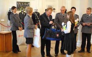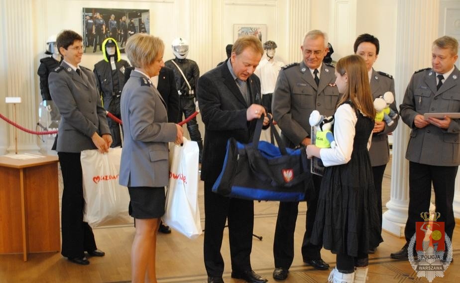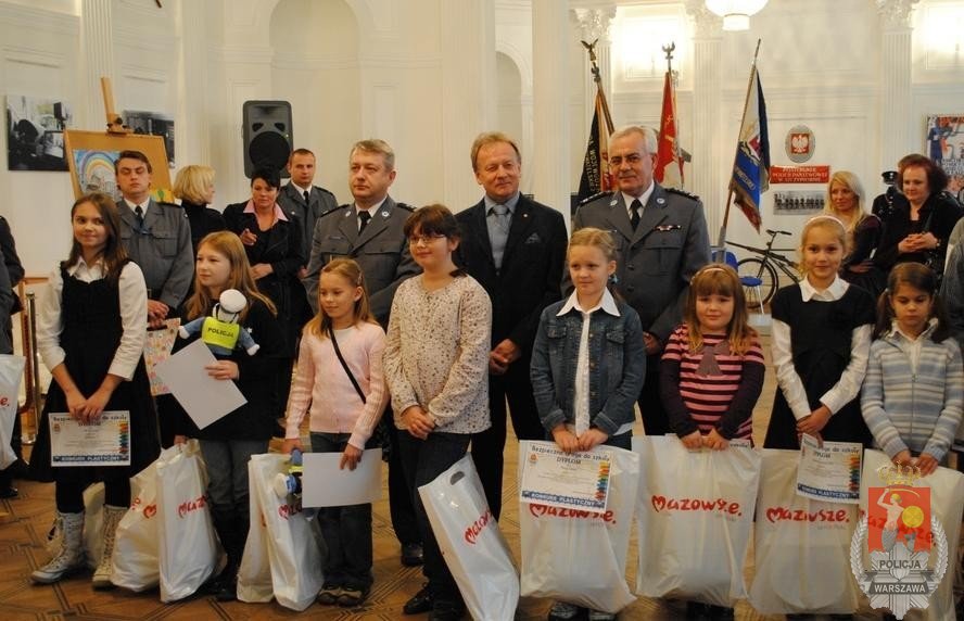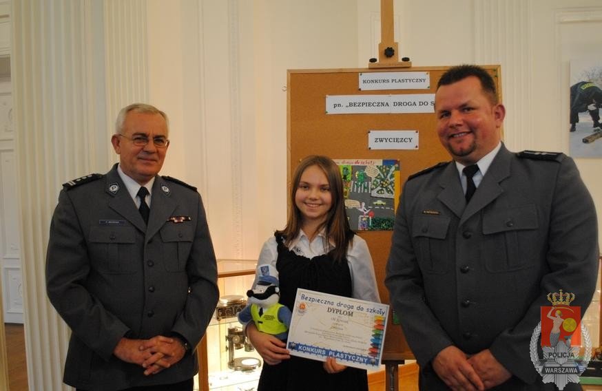 Nagrody wręczał Zastępca Komendanta Stołecznego Policji insp. Tadeusz Bereda, a w imieniu Marszałka Województwa Mazowieckiego Pan Krzysztof Knyż, kierownik biura ds. bezpieczeństwa. Łącznie wyróżnienia otrzymało 14 dzieci, które prezentowały komendy rejonowe i powiatowe garnizonu stołecznego w finale konkursu „Bezpieczna droga do szkoły”. Wszystkie dzieci otrzymały odblaski i komplety wyposażenia roweru ( kaski, latarki i komplet oświetlenia). Laureatka konkursu Ola Korczak ze Szkoły Podstawowej w Pamiątce otrzymała dyplom, pluszaka borsuka maskotkę stołecznych policjantów oraz torbę sportową i dres.