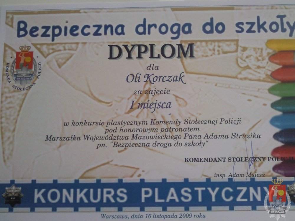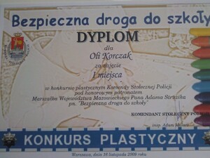 Wraz z rozpoczęciem roku szkolnego ruszył konkurs plastyczny pn. „Bezpieczna droga do szkoły”. Konkurs był organizowany przez policjantów z Komendy Stołecznej Policji pod honorowym patronatem Marszałka Województwa Mazowieckiego Pana Adama Struzika. Adresowany był do uczniów wszystkich szkół podstawowych z terenu działania Komendy Stołecznej Policji.