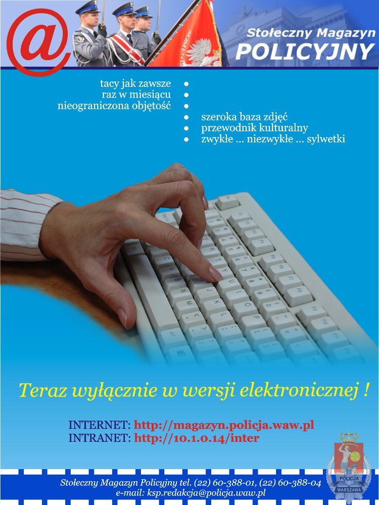 Ukazał się pierwszy numery elektronicznego „Stołecznego Magazynu Policyjnego” wydawanego przez Komendę Stołeczną Policji. Gazetę można znaleźć na stronach internetowych pod adresem http://magazyn.policja.waw.pl oraz w wewnętrznej sieci intranet KSP. Zniknie papierowe wydanie gazety, ale teraz będzie się ona ukazywać częściej w nieograniczonej objętości i z szeroką bazą zdjęć.