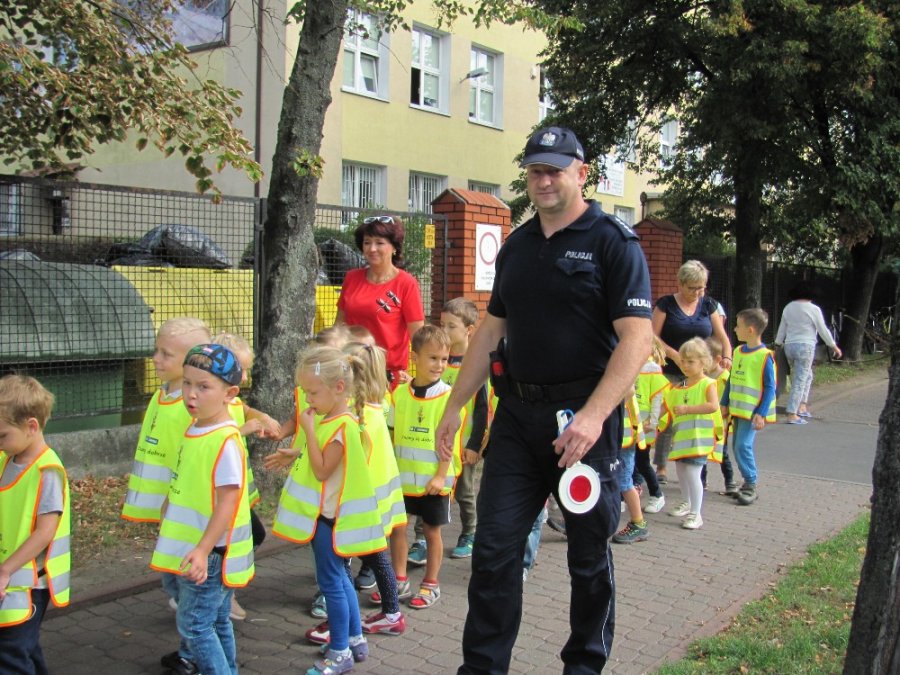 Dzieci w starszych grupach po teoretycznym przygotowaniu mogły wykazać się znajomością tych zasad w praktyce. Na pobliskim przejściu dla pieszych można było zobaczyć grupę przedszkolaków w odblaskowych kamizelkach, którzy pod opieką policjanta i nauczycieli ćwiczyli zdobyte umiejętności.