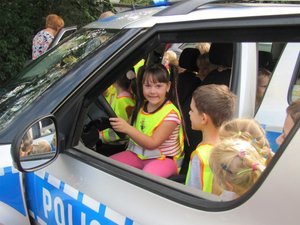 Na zakończenie spotkań nie mogło zabraknąć informacji o pracy policjantów i pokazu wyposażenia służbowego funkcjonariuszy. Na dziedzińcu przedszkola dzieci mogły poczuć się jak stróże prawa, siedząc za kierownicą radiowozu.