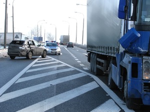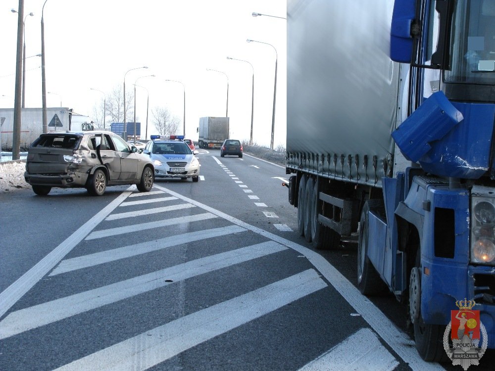 Do zdarzenia doszło wczoraj, około 12:30 w Zakroczymiu. Na drodze krajowej nr 62 przed skrzyżowaniem z drogą krajową nr 7 doszło do niebezpiecznego wypadku samochodu ciężarowego z osobowym. Z wstępnych ustaleń policjantów wynika, że kierujący bmw 36-letni Filip P. ruszył ze stacji paliw w kierunku Warszawy wraz z czterema pasażerami. Po przejechaniu kilkudziesięciu metrów postanowił zawrócić na stację. Wykonując ten manewr w miejscu, gdzie było to zabronione przez podwójną ciągłą linię. Kierowca auta osobowego wjechał na pas ruchu dla kierunku przeciwnego i zajechał drogę tirowi, który jechał od strony Nowego Dworu Mazowieckiego. Kierujący pojazdem ciężarowym chcąc uniknąć zderzenia zjechał na lewy pas ruchu. ale i tak uderzył swoim przednim, prawym narożnikiem, w tylny, prawy narożnik samochodu osobowego. W wyniku uderzenia ranna została 24-letnia kobieta, którą przetransportowano helikopterem do szpitala w Warszawie. Obaj kierujący w chwili wypadku byli trzeźwi. Pomimo błyskawicznie podjętych czynności przez policjantów, trudnienia w ruchu trwały ponad 2 godziny.