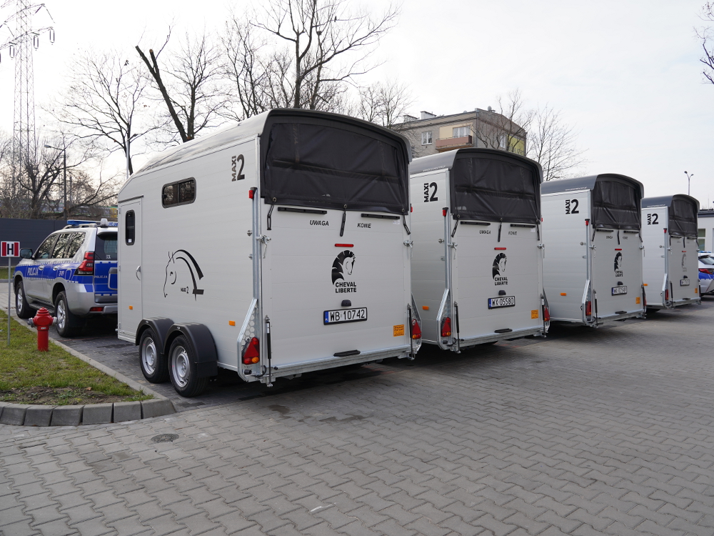 Przyczepy do przewozu koni, które trafiły do Wydziału Wywiadowczo-Patrolowego, mają posłużyć do komfortowego przewozu zwierząt na miejsce służby.