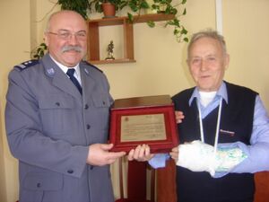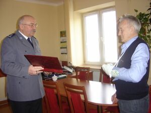 Dziś z dumą na ręce pana Jerzego Komendant Rejonowy Policji Warszawa VII mł. insp. Dariusz Pergoł w imieniu Komendanta Stołecznego Policji insp. Adama Mularza, złożył wyrazy podziękowania, uznania i szacunku, oraz przekazał pamiątkowy ryngraf.