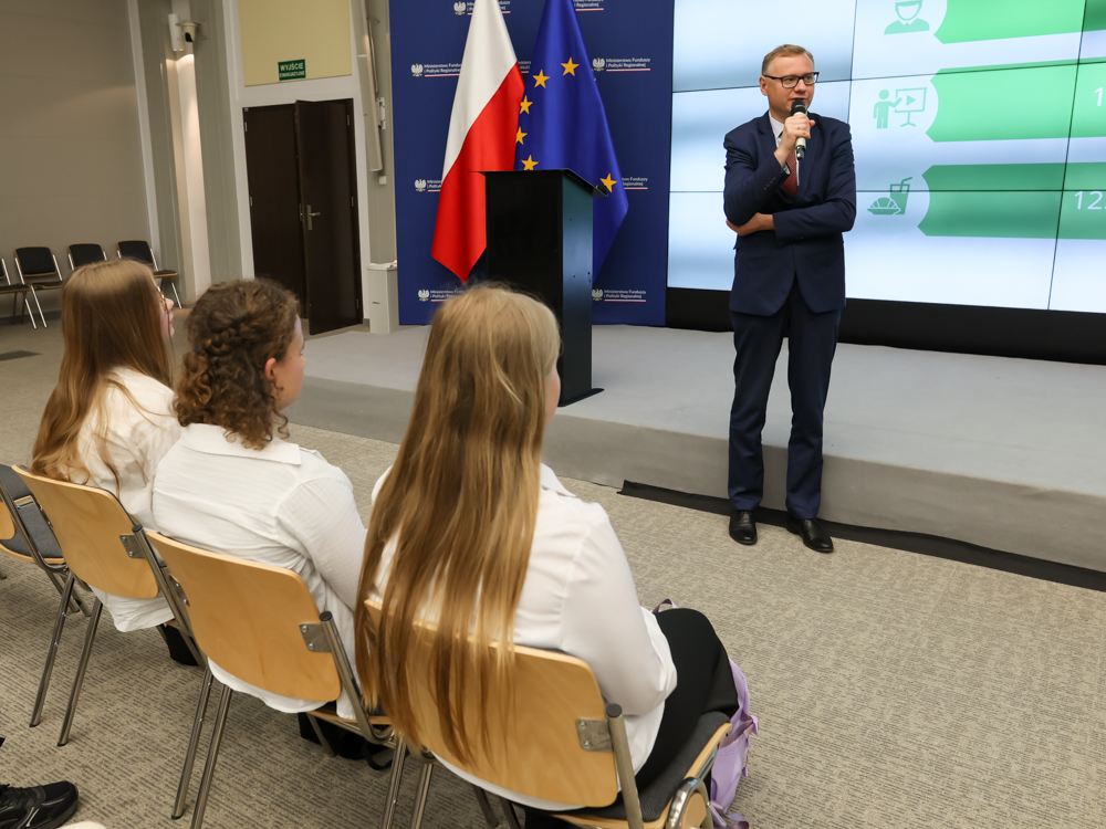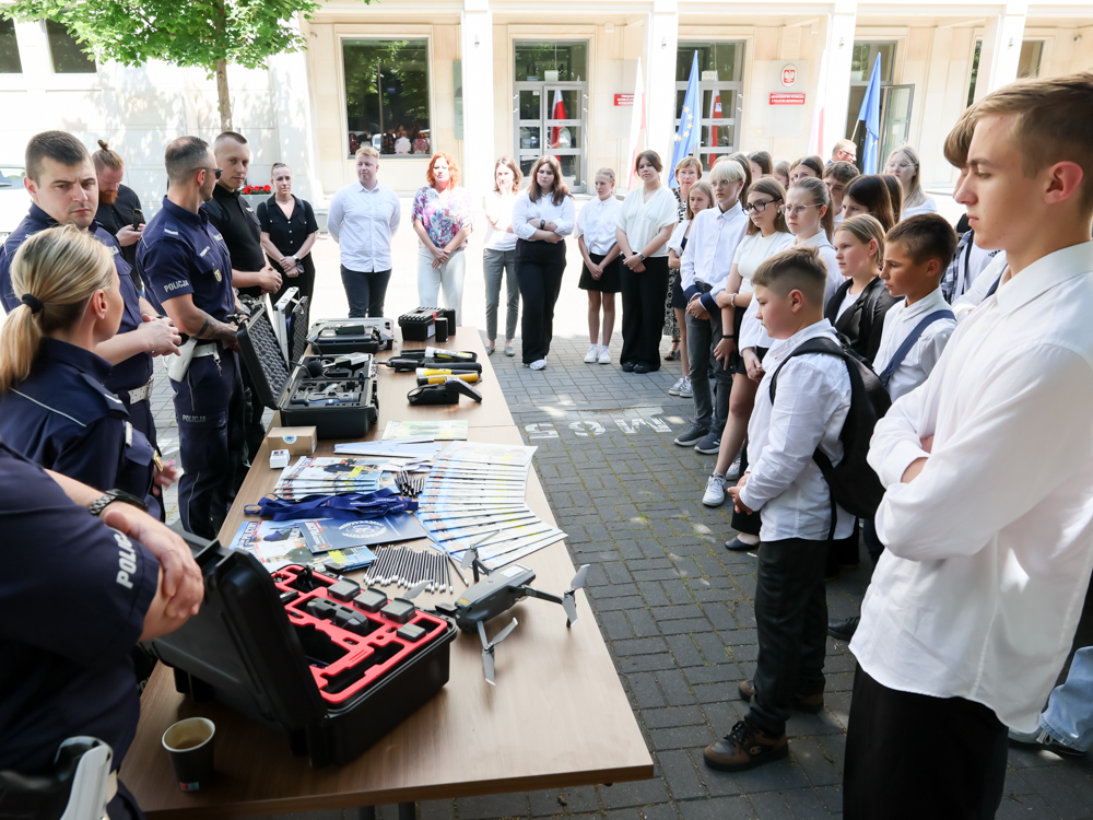 W dniu 16 czerwca 2025 r. w godz. 11.00 – 13.00 w budynku Ministerstwa Funduszy i Polityki Regionalnej przy ul. Wspólnej 2/4 w Warszawie odbyła się prezentacja środków transportowych oraz sprzętu zakupionego przez Komendę Stołeczną Policji w ramach Programu Operacyjnego Infrastruktura i Środowisko 2014 – 2020 w związku z wizytą młodzieży szkolnej z Lwówka Wielkopolskiego. Gospodarzem spotkania był Pan Jarosław Orliński – Dyrektor Departamentu Programów Infrastrukturalnych, a Komendę Stołeczną Policji reprezentowali funkcjonariusze i pracownicy cywilni Zespołu Funduszy Pomocowych KSP, Wydziału Ruchu Drogowego KSP, Wydziału Komunikacji Społecznej oraz Wydziału Doboru KSP.