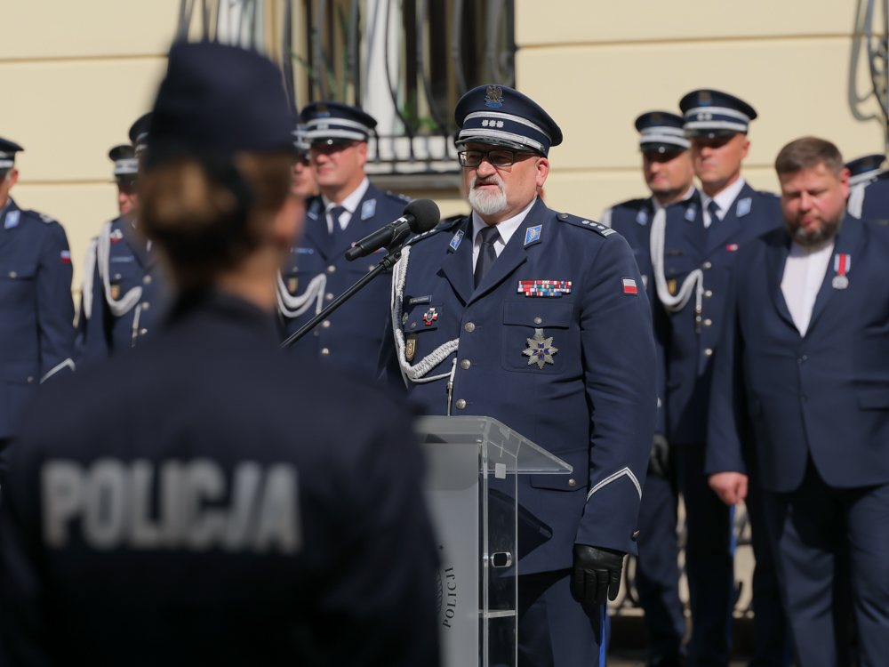 Zwracając się do nowych policjantów i policjantek Komendant przytoczył słowa Abrahama Lincolna, uznawanego obecnie za jednego z największych strategów: nasze życie to pasmo małych sukcesów, powtarzanych systematycznie każdego dnia, tygodnia, miesiąca, roku. Będą one zawsze sukcesami, dopóki Państwo nie stracicie wiary w to, co robicie. Życzę Wam już na początku Waszej służby to, jak będziecie wykonywać ten zawód pokazało, że Wasz wybór był bardzo dobry. (…) Bądźcie też dumni z tego, że nosicie granatowy mundur. Oprócz odpowiedzialności ten zawód potrafi dostarczyć także bardzo dużej satysfakcji. Życzę Wam, aby służba każdego dnia takiej satysfakcji Wam dostarczała, życzę Wam, aby się spełniły Wasze zawodowe marzenia, abyście trafiali w służbie na ludzi Wam przyjaznych.