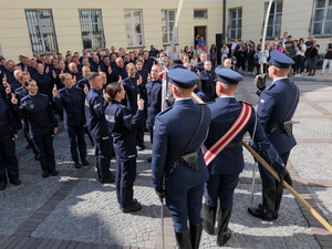 80 nowych policjantów wypowiedziało dziś słowa roty. Uroczysta zbiórka z okazji ślubowania odbyła się w na dziedzińcu Komendy Stołecznej Policji. 53 funkcjonariuszy i 27 funkcjonariuszek, rozpoczynających służbę w garnizonie stołecznym, po przeszkoleniu podstawowym zasili oddział prewencji oraz trafi do jednostek i komórek organizacyjnych Komendy Stołecznej Policji.