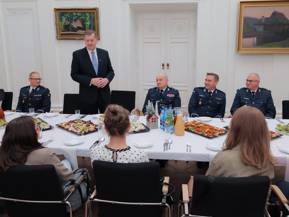W spotkaniu wigilijnym oprócz przedstawicieli kierownictwa KSP, wzięli udział: kapelan KSP ksiądz Jacek Kuziel, mł. insp. w st. spocz. Irena Zając – Prezes Zarządu Fundacji Pomocy Wdowom i Sierotom po Poległych Policjantach oraz nadinsp. w st. spocz. Władysław Padło – Przewodniczący Rady Fundacji.