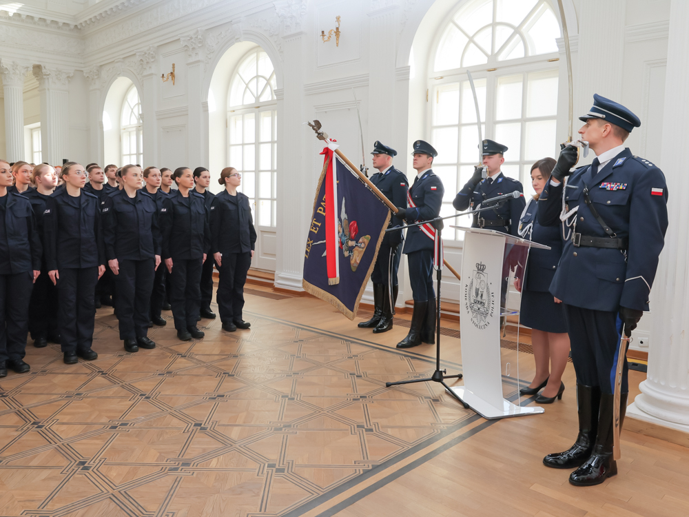 Po złożeniu meldunku Komendantowi Stołecznemu Policji wprowadzono poczet sztandarowy, po czym policjantki i policjanci, którzy pomyślnie przeszli wszystkie etapy postępowania rekrutacyjnego, wypowiedzieli słowa roty za Komendantem Stołecznym Policji mł. insp. dr Krzysztofem Ogrońskim: „… ślubuję służyć wiernie narodowi, chronić ustanowiony Konstytucją Rzeczpospolitej Polskiej porządek prawny, strzec bezpieczeństwa Państwa i jego obywateli, nawet z narażeniem życia (…) pilnie przestrzegać prawa, dochować wierności konstytucyjnym organom RP, przestrzegać dyscypliny służbowej oraz wykonywać rozkazy i polecenia przełożonych (…) strzec tajemnic związanych ze służbą, honoru, godności i dobrego imienia służby oraz przestrzegać zasad etyki zawodowej (…)”.