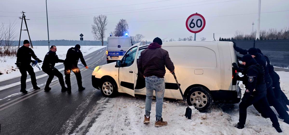 Policyjna pomoc w trudnych warunkach pogodowych -