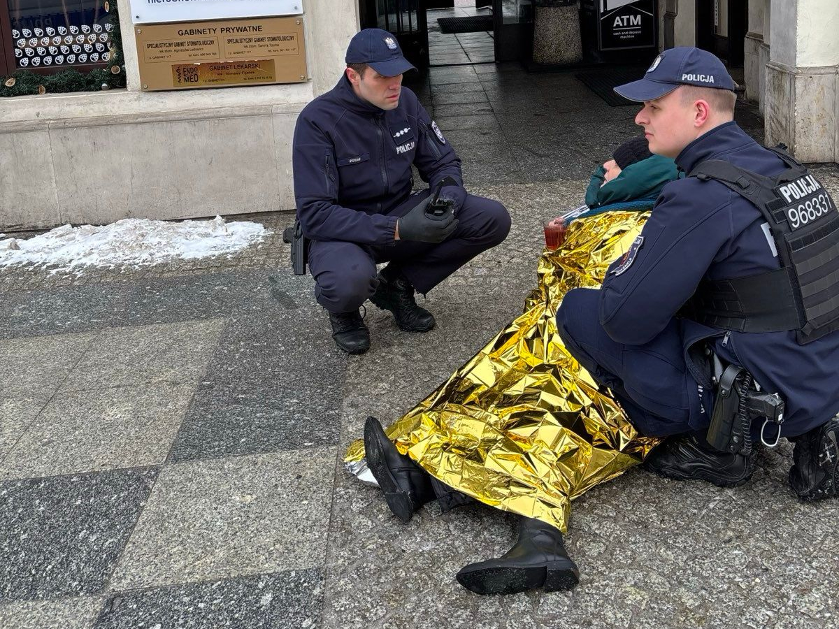 Tego samego dnia na ulicy Nowy Świat zwrócili uwagę na starszą panią, która przewróciła się na śliskiej nawierzchni. Funkcjonariusze niezwłocznie udzielili jej pierwszej pomocy, wezwali pogotowie ratunkowe oraz zadbali o komfort poszkodowanej, częstując także ciepłą herbatą.