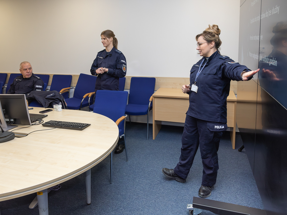 Policjantki z Wydziału Doboru KSP zaprezentowały uczniom zasady rekrutacji do Policji, etapy postępowania kwalifikacyjnego oraz wymagania stawiane kandydatom. Młodzież mogła dowiedzieć się, jak wygląda proces naboru, jakie kompetencje są szczególnie cenione oraz jakie możliwości rozwoju czekają na przyszłych policjantów.