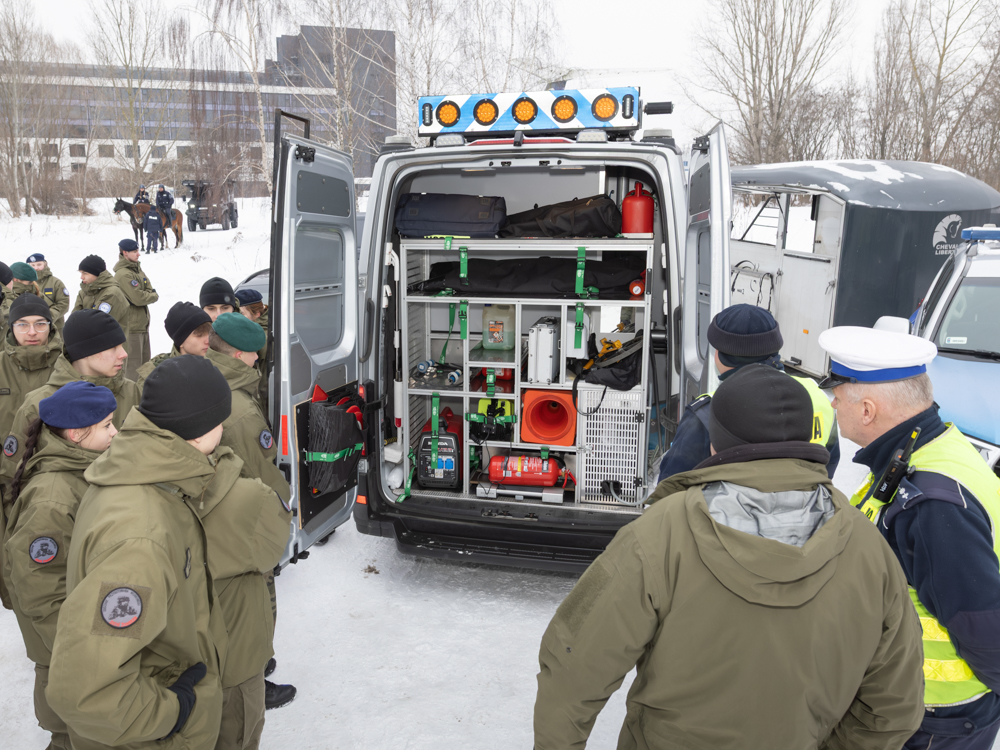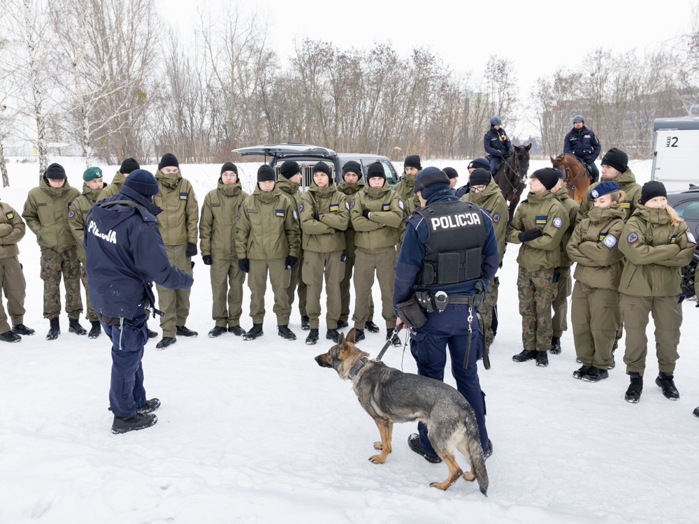 Następnie mł. insp. Tomasz Seweryn z Wydziału Prewencji Komendy Stołecznej Policji wraz uczniami udał się na obiekt Komendy Stołecznej Policji przy ul. Włochowskiej, gdzie młodzież miała okazję przyjrzeć się z bliska specjalistycznym pojazdom Samodzielnego Pododdziału Kontrterrorystycznego Policji oraz radiowozom wykorzystywanym przez Wydział Ruchu Drogowego Komendy Stołecznej Policji. Ponadto funkcjonariusze z Wydziału Wywiadowczo-Patrolowego Komendy Stołecznej Policji zaprezentowali pokaz wyszkolenia koni służbowych oraz umiejętności psów służbowych.
