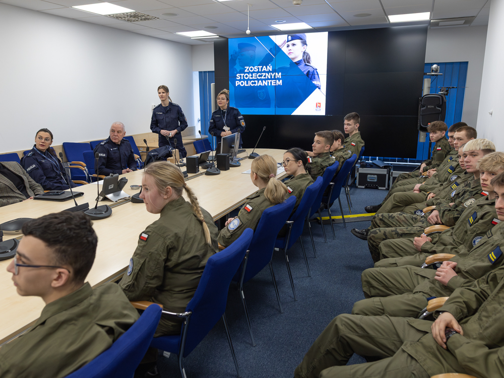 Wizyta uczniów Akademickiego Liceum Ogólnokształcącego w Białej Podlaskiej o profilu mundurowym w Komendzie Stołecznej Policji -