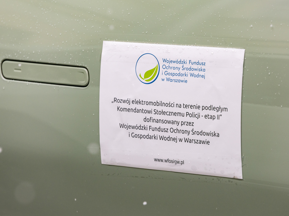 W Komendzie Stołecznej Policji odbyła się uroczystość oficjalnego przekazania Nowych samochodów. Pojazdy zostały zakupione w ramach projektu pn. „Rozwój elektromobilności na terenie podległym Komendantowi Stołecznemu Policji – etap II” dofinansowanego przez Wojewódzki Fundusz Ochrony Środowiska i Gospodarki Wodnej w Warszawie. Samochody w policyjnej wersji nieoznakowanej z napędem elektrycznym trafiły do Komendy Rejonowej Policji Warszawa I, Komendy Rejonowej Policji Warszawa II, Wydziału Komunikacji Społecznej KSP i Laboratorium Kryminalistycznego KSP.