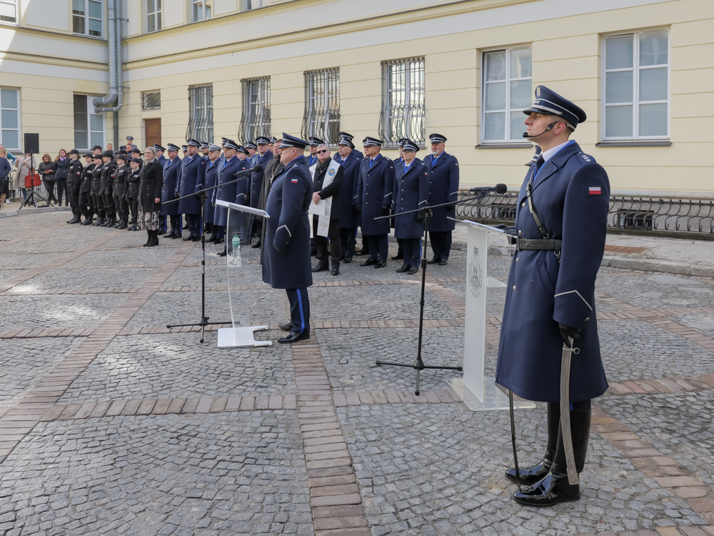 Po złożeniu ślubowania, 35 nowych policjantek i 60 nowych policjantów uroczyście powitał Komendant Stołeczny mł. insp. dr Krzysztof Ogroński: - złożyliście przed chwilą ślubowanie. Pamiętajcie, że składa się je tylko raz. To świadczy o tym, jak doniosła to chwila i jak ważny to moment w Waszym życiu. Kolejnym ważnym momentem będą szkolenia, które czekają na Was w tej chwili i chciałbym, abyście do tych szkoleń podeszli z dużą odpowiedzialnością. (…) Uczcie się pilnie, ćwiczcie pilnie po to, abyście byli bezpieczni na ulicach, podczas podejmowanych interwencji, aby byli bezpieczni obywatele, wobec których te czynności podejmujecie i abyście byli skuteczni. Garnizon stołeczny jest garnizonem najtrudniejszym w Polsce, drugim pod względem wielkości. Pełnimy służbę w miejscu zaszczytnym, w stolicy państwa, tym samym jesteśmy widoczni nie tylko na ulicach. (…) Cieszę się, że do nas dołączyliście, cieszę się, że chcecie służyć obywatelom, zaprowadzać bezpieczeństwo i porządek publiczny wspólnie z nami, stojąc ramię w ramię podczas działań, zabezpieczeń i zwykłych interwencji. I za to Wam dziękuję.