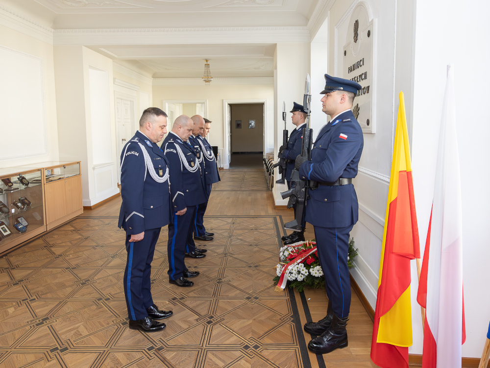 Do obchodów przyłączyła się również Komenda Stołeczna Policji. Przed Białą Salą, pod tablicą upamiętniającą poległych funkcjonariuszy, wieniec pamięci w imieniu stołecznych policjantów i pracowników naszej jednostki, złożył Komendant Stołeczny Policji z Zastępcami.